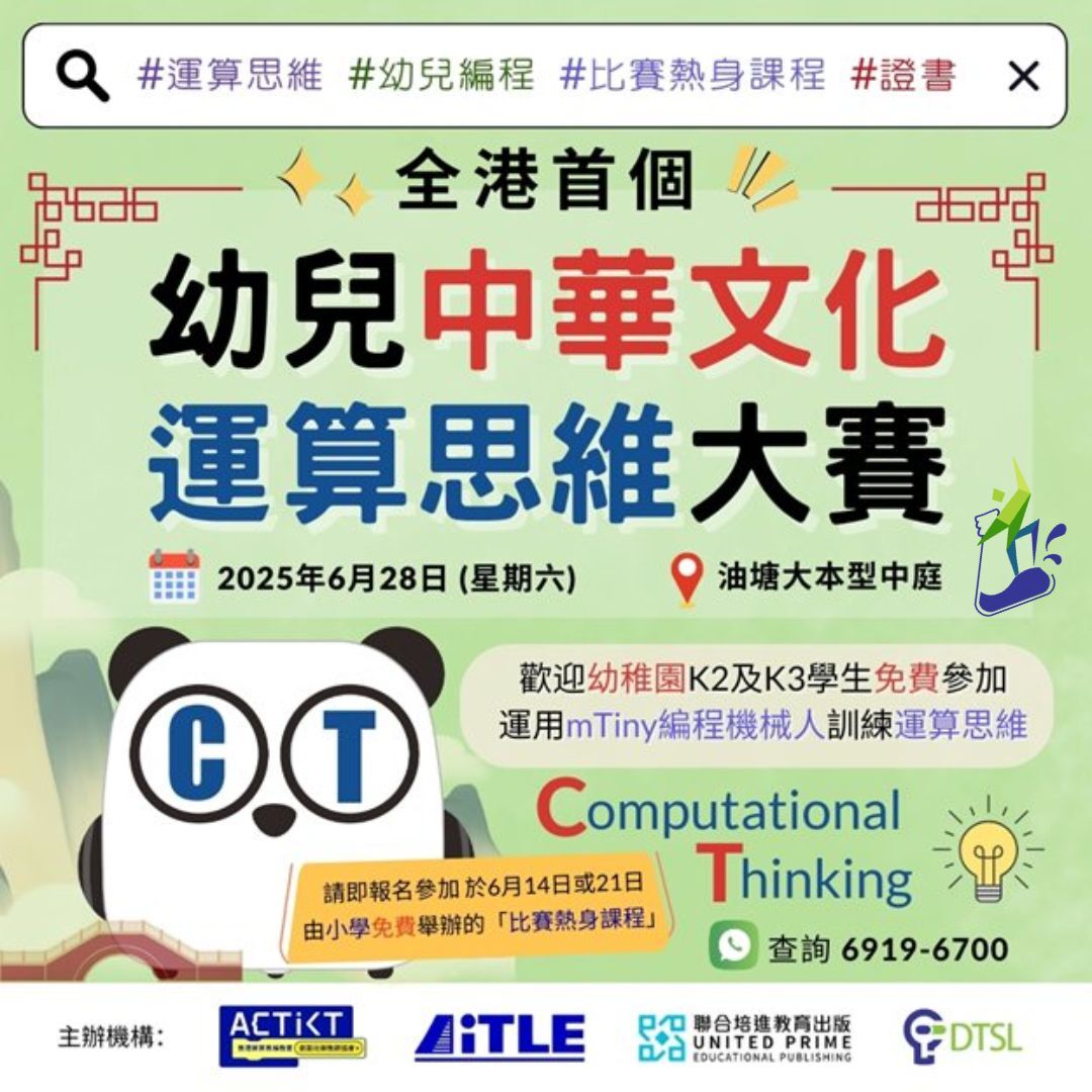全港首個大型幼兒【中華文化運算思維比賽 2025】現開始免費報名,運用 mTiny 編程機械人訓練運算思維!